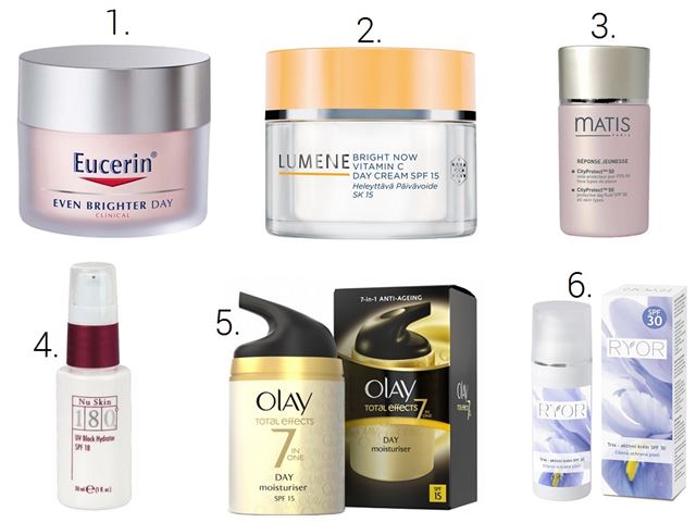 1. Eucerin, krém proti pigmentovým skvrnám, SPF 30, 675 Kč, 2. Lumene, krém s vitaminem C, SPF 15, 489 Kč,