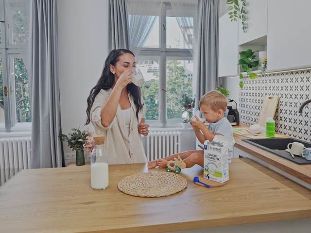 I ve dvou letech, kdy si naši malí už připadají velcí, je důležité dávat pozor na to, co jedí či pijí. Batolecí věk je obdobím velkých objevů - dítě se učí novým dovednostem, stává se samostatnějším a pomalu si buduje své místo v kolektivu. Výživa v této fázi hraje klíčovou roli, protože podporuje nejen správný růst, ale i imunitní systém, který se stále vyvíjí. Batolecí mléko HiPP 4 JUNIOR Combiotik obsahuje důležité vitaminy, minerály i prospěšné mléčné kultury pro specifické potřeby malých dětí. A co víc - díky jemné chuti si ho i ty nejmlsnější jazýčky rychle